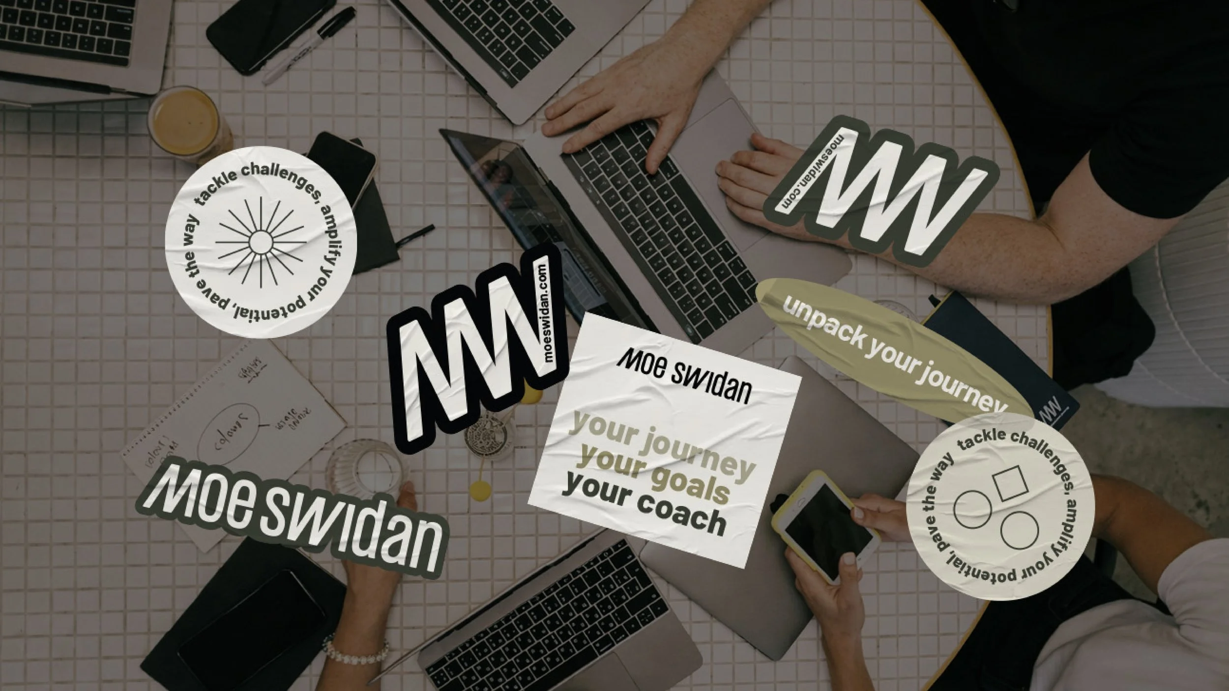 At the core sits a simple, lowercase logotype - approachable, human, and grounded. The emblem emerges from the interplay between the letters M and W, subtly forming a sense of motion and growth. It reflects Moe’s philosophy: progress isn’t linear, but it always moves forward. The final upward line becomes a quiet signal of improvement - earned, not forced.